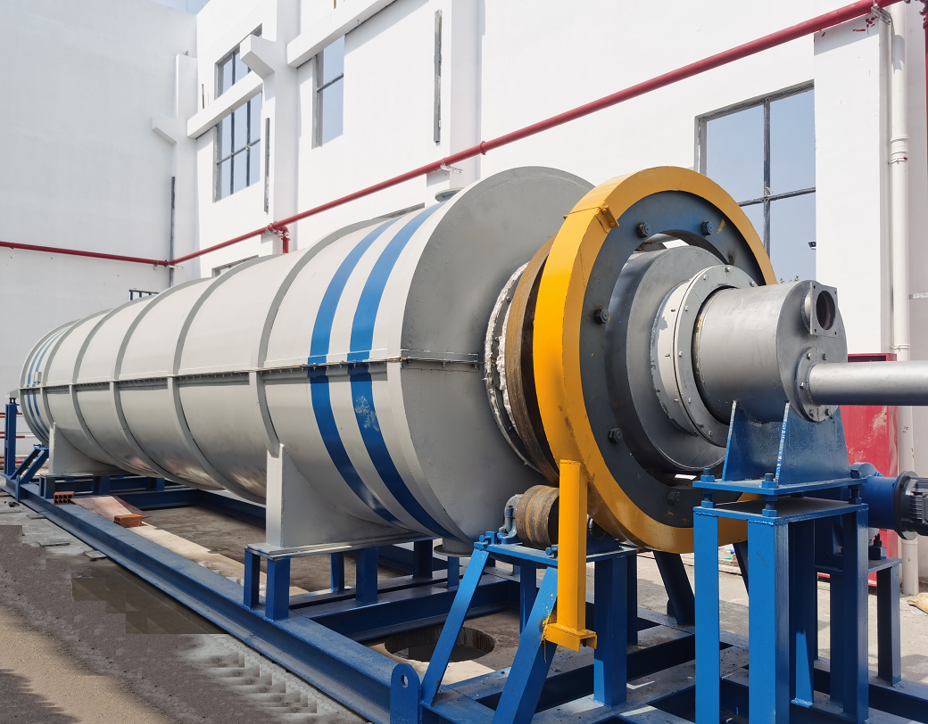某市政污水厂80%的污泥进行调理改性,板框压滤机脱水至含水率60%以下,输送至泥饼仓,打散进入干化器,污泥干化短将污泥含水率降低到20%以下,再输送进入热解器将污泥气化炭化,一面获得可燃气能源回用,另一面制成颗粒炭用于园林绿化覆盖料及绿化保水砖材料,最终实现污泥处理处置资源化。